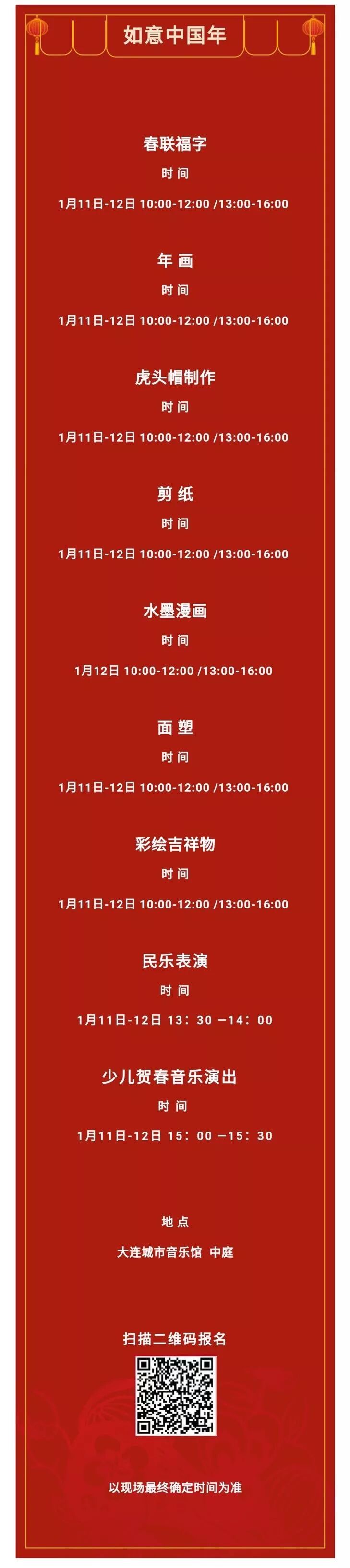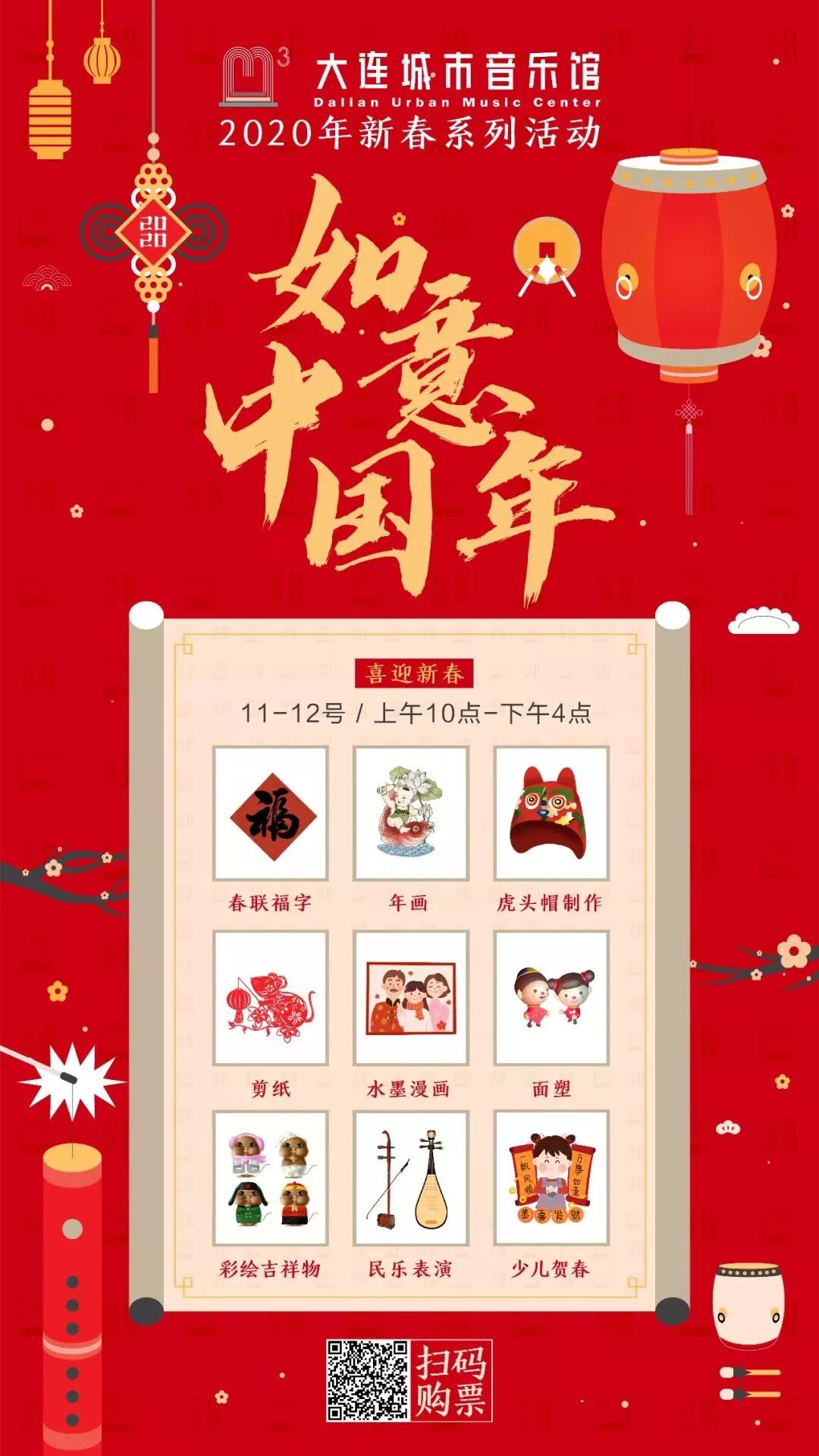 Jan 2020 2020如意中国年|大连城市音乐馆带你寻找回忆里的年味 DATE 2020-01-09 By 福音乐讯 传播优秀传统文化体验春节民俗之美大连城市音乐馆以春节为契机为市民及游客打造具有文化内涵的中国年在民乐/戏曲/传统手艺的传承里在贺岁/团圆/传统文化的体验中让春节在庙会式的狂欢之外重现中国文化的精髓1月11日-12日来大连城市音乐馆打卡中国年地 点大连城市音乐馆以音乐表现文化 让文化引领音乐深入挖掘中国传统文化的精髓是传播优秀民族文化的道场2019年第一季如意中国年盛况